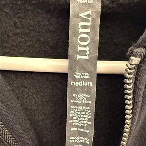 Excellent condition. Rarely worn. See photo of tag for fabric content. Super soft. No noticeable stains or imperfections. The length of the zipper measures approximately 26 inches from top to bottom. Color is a faded black.