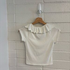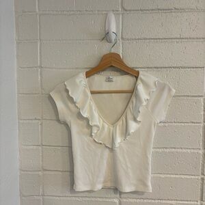 Aritzia Wilfred Danette Ruffle Cropped Ribbed T-Shirt