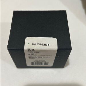 Size 7 ring with a beautiful blue stone. It has a clear stone on each side. Looks great on men or women