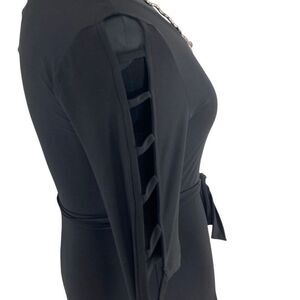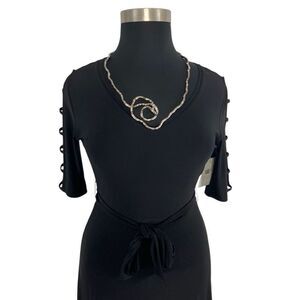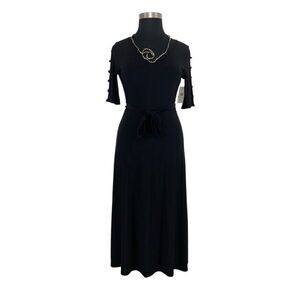 Chaus L Black Maxi Dress Textured Terrain Travel Evening Event Cut Outs Goth NWT