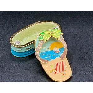 Hawaiian Flip Flop Trinket Box Palm Tree Island Sunset Mini Keepsake