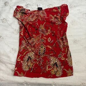 Vintage Red Paisley Tie-Back Top – Tag Size Large (Best for Medium)