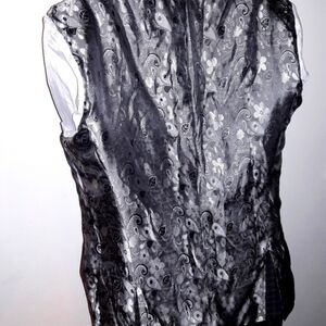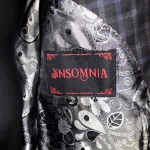This awesome INSOMNIA plaid velvet trimmed blazer is an instant classic. A true statement piece, it is a grey and white plaid pattern, accented in black velvet. Overall shell is 100% wool, with a polyester-rayon lining. Two-button, front closure with double-vent back. Size 40 Regular. In great, gently-used condition. Made in Italy. Perfect for the special occasions. Claim it today.