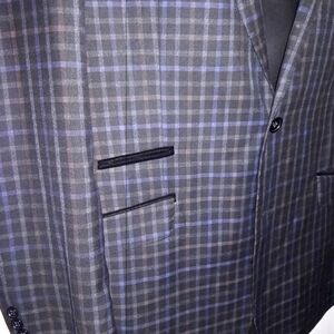 INSOMNIA MANZINO Grey Plaid Blazer, Black Velvet Accents, 40R