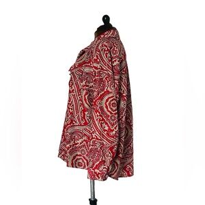 Kim Rogers Women's Red Beige Long Sleeve Paisley Button Down Blouse Plus Size 3X