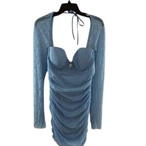 Oh Polly Mini Dress US 8 UK 10 Embellished Blue Long Sleeve St Germain Dress