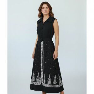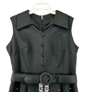 Vintage Maxi Dress Size 16-1/2 60s 70s Sleeveless Black White Stones Trees Avon