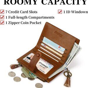 Features: This genuine leather wallet is designed to be both stylish and super practical. It features 7 RFID-blocking credit card slots, a clear ID window, a zipped coin pocket, a full-length bill compartment, and even a tassel keychain. Compact yet surprisingly roomy, it’s perfect for organizing your essentials without the bulk.