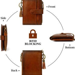Leather Wallet Women RFID Blocking Compact Bifold Coin Pocket Brown