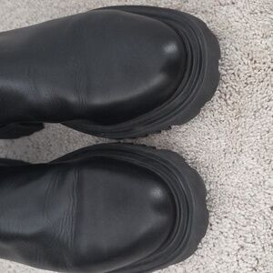 Allsaints Hallie Lug sole boots! Stylish black leather boots with a chunky sole. Perfect for a bold look. Very lightweight boots! Comfortable and easy pull on, higher shaft. Worn only once- near perfect condition!