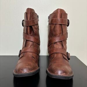 Born Leather Moto Boots Women’s 7.5 Brown Buckle Zip Rugged Comfort