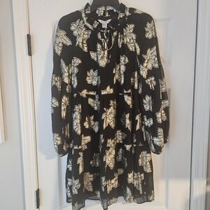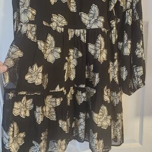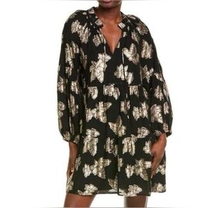 Tommy Bahama Shimmering Shores Longs Sleeve Tiered Dress: Black & Gold Metallic