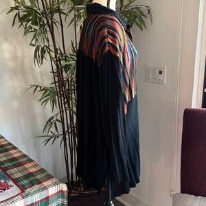 Stylish multicolor striped button down shirt with gold buttons. Perfect for any occasion.