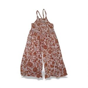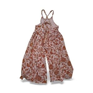 Adorable and flowy Intimately Free People “Drop That Onesie” in a pink + rust floral print. Wide-leg silhouette, adjustable crisscross straps, smocked waist, and super lightweight comfy fabric. Perfect for layering or warm weather.
