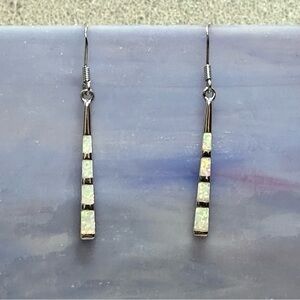 Polished Sterling Silver 925 Opal Inlay Drop Earrings Iridescent Tapered Dangle