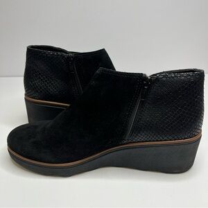 Clarks Mazy Harwich Black Suede Wedge Ankle Boots Women's Size 9