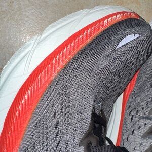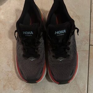 Hoka Gray and Red Sneaker clifton 8