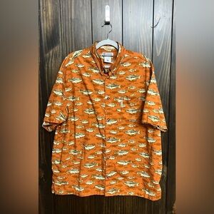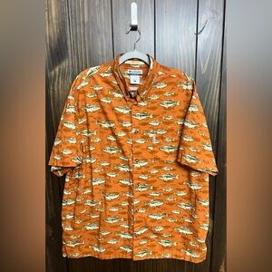 COLUMBIA SPORTSWEAR ORANGE FISH PRINT ALL OVER DEEP SEA FISHING SHIRT MENS XL