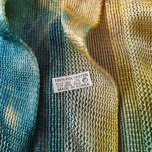 Scarf Ruffle Knit Ombre Blue Tan Yellow Fringe Lightweight Made in Korea Y2K