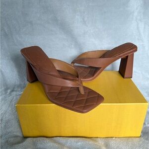 Elegant tan heels with quilted design with a block heel. Stylish and versatile along with comfy.