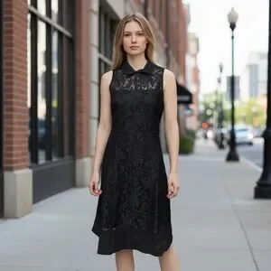 AMT Black Lace Crochet Sleeveless Dress New