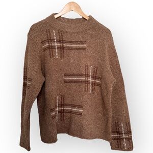 lizsport sweater, liz claiborne, lambswool sweater, embroidered wool sweater, tan sweater, scottish moors, women’s sweater XL, cozy wool knit
