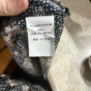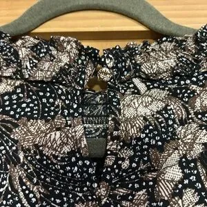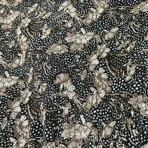 Chic dress with intricate black and brown patterns. Features a stylish design.