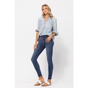Features: These mid-rise skinny jeans are crafted from a premium 93% cotton, 6% polyester, and 1% spandex blend, giving you a stretchy, comfortable fit that moves with you all day. The flattering skinny silhouette is perfect for showcasing your curves, with stylish whiskering and light fading for a relaxed, worn-in vibe. The secure single button and zipper closure make getting dressed easy peasy.