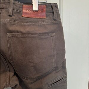 Upgrade your wardrobe with these stylish olive colored jeans from tobacco motowear Perfect for the motorcyclist who values style and dresses for the slide as well as the ride! Msrp $377.