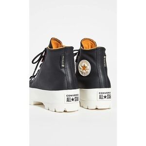 Converse Chuck Taylor All Star Gore-Tex Waterproof Lugged High Top Sneaker Sizes Women’s 9, 10 Waterproof leather upper for protection GORE-TEX inner bootie construction Chunky and unique lugged rubber sole Soft corduroy lining OrthoLite lining for comfort and breathability Leather and synthetic upper; rubber sole Brand new without box