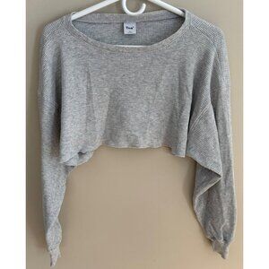 Aritzia TNA Long Sleeve Cropped Waffle Knit Top in Gray Size XXS