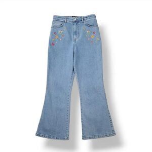 vintage, VTG, retro, 80s, 90s, Y2K, Light wash, denim, jean, cotton, high waisted, high rise, Embroidered, embroidery, floral, flowers, butterfly, kidcore, fairy, fairycore, pastel, soft-girl, festival, concert, Coachella, coastal cowgirl, boho, bohemian, hippie, free spirit, Southwestern, western