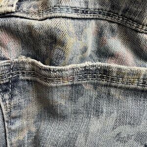 Worn and washed once or twice. There is some slight fraying/loose threads on the back pockets as shown. Overall, though, they are in very good used condition. Please see photos for details, and reach out should you need additional info.