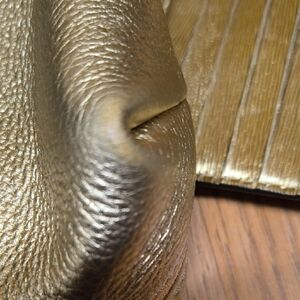 Elegant gold leather shoulder bag with a sleek design. Perfect for any occasion.