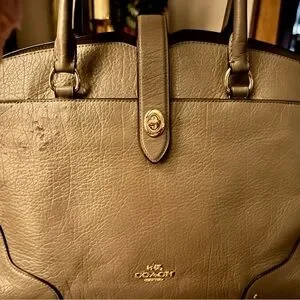 Chic Coach satchel in taupe leather. Features elegant gold-tone hardware. Perfect for everyday style. Has some scratches on the leather shown in a few pics, I’ve always tied a scarf right there and you can’t see the scratches. In person you can barely see them unless you are looking for them. Clean inside no stains or damage of any kind 😊