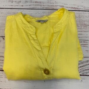 John Mark Women Yellow Linen XXL Button Down Tunic Top Roll Tab Sleeve Relaxed