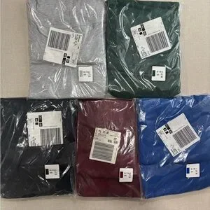 Set of five t-shirts in assorted colors: gray, green, black, red, and blue. Perfect for casual wear.