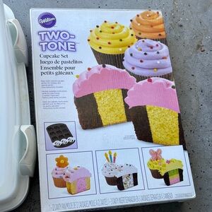 Wilton cupcake carrier and Two-Tone Cupcake Set with White and Pink Accents