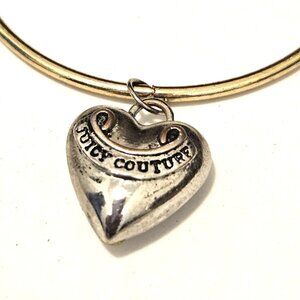 Juicy Couture Gold Tone Bangle Bracelet Silver Tone Puffed Heart Charm