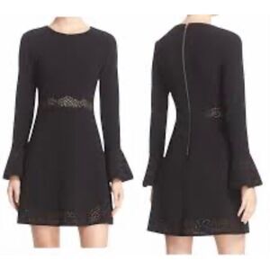 Parker Dress Sonoma Laser Cut Bell Womens Small Black Long Sleee Mini whimsigoth