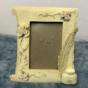 Cream Resin 3D Photo Frame of Inkwell Feather and Roses - 4.25" X 2.75" Photo