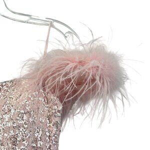Alyce Paris 4498 Sequined Fitted Mini Dress Off Shoulder Feathers Pink Sz 4 New