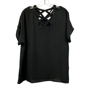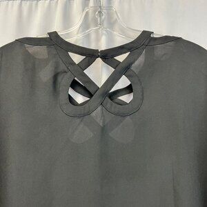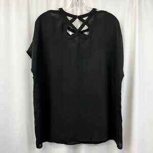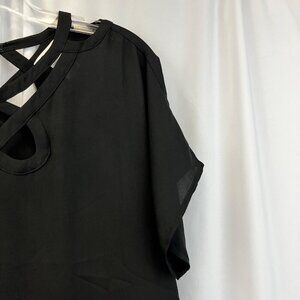 Esley Semi Sheer Caged Neck Line Short Sleeve Blouse Black Womens Size Medium