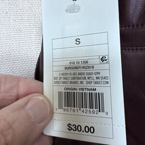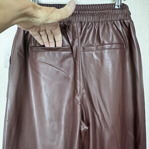 Women's High-Rise Faux Leather Tapered Ankle Pull-On Pants Sz S NWT Burgundy