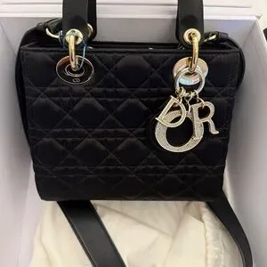 Dior Christian Dior Lady Dior Mini Hand Shoulder Bag Rhinestone Satin Black