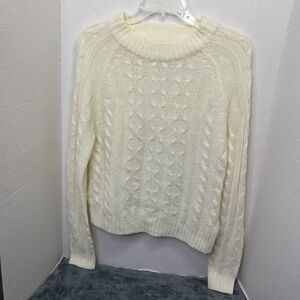 Women’s Cable-knit Sweater White Size Medium Cozy Classy Cottagecore Preppy