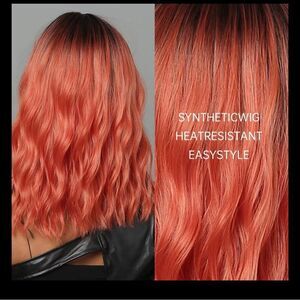 Stunning 18 inch bob water wave, medium length brown gradient dark red ombre wig.