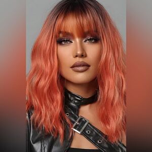 Stunning 18 inch bob water wave, medium length brown granite, dark red ombre wig