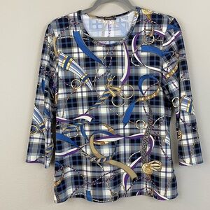 J. McLaughlin Equestrian Plaid Print Signature Tee Size Large