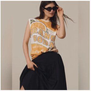 Anthropologie Pilcro Womens M The Vinnie Orange Soda Graphic Muscle Tee Boho